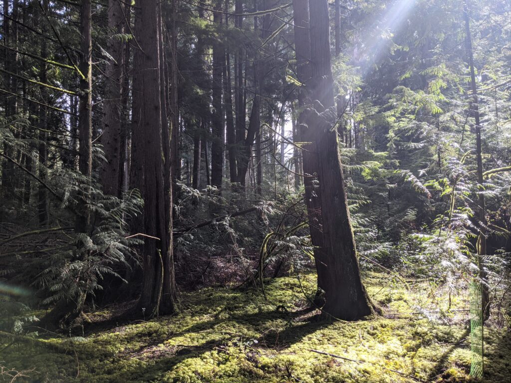 In an ongoing research study, we are working with Great Peninsula Conservancy and a small forest landowner to evaluate the effectiveness of using assisted migration with western redcedar (Thuja plicata). By comparing a local genotype sourced from the Puget Sound region with a relocated genotype sourced from a drier location in Oregon, we hope to determine whether the local-is-best mantra continues to be a viable strategy for the future forests of the Pacific Northwest