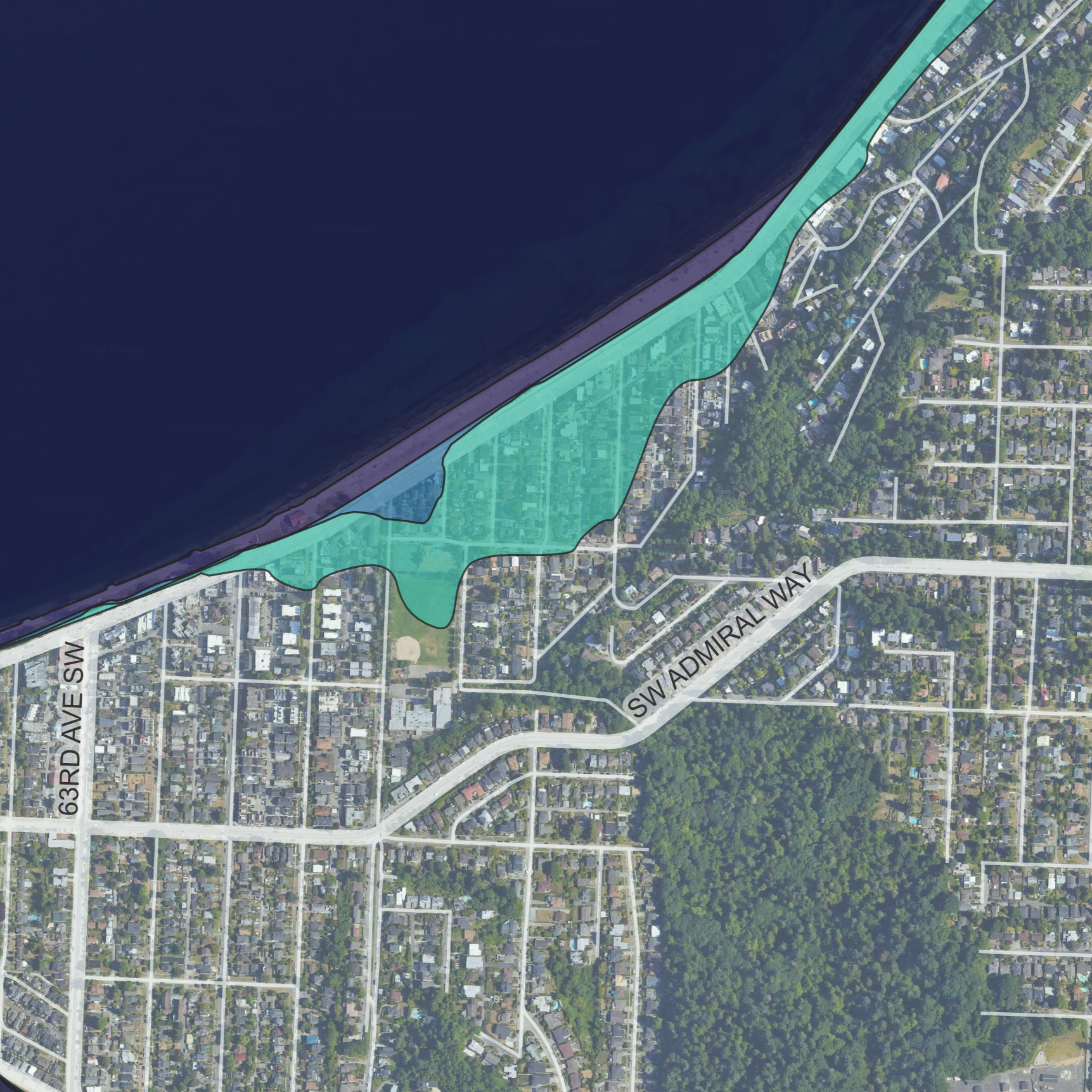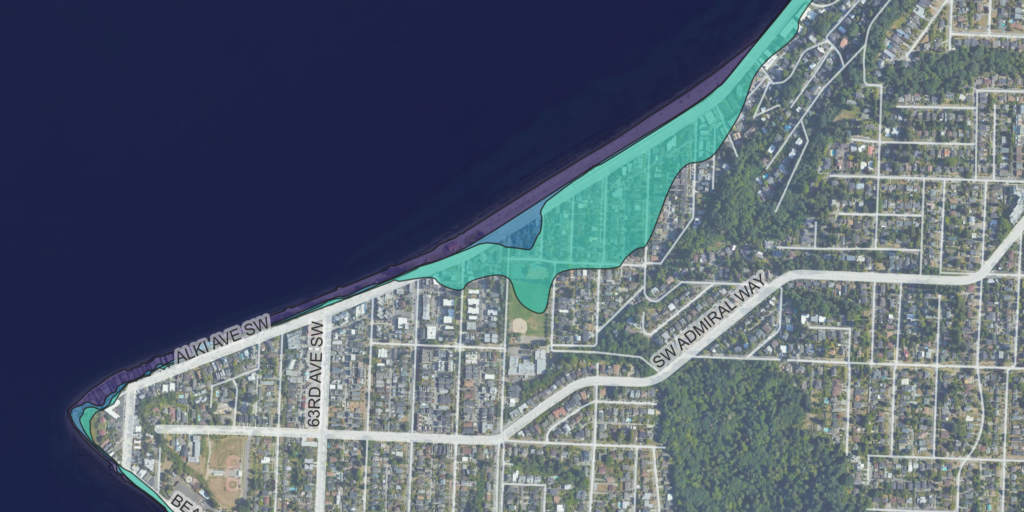 As part of our workflow for conducting climate change vulnerability assessments, we evaluate the exposure and sensitively of shoreline areas to projected sea-level rise. In this project, we helped a landowner assess the flooding risk under a future “King Tide” event in the year 2100 under a high-end climate change scenario (RCP 8.5). We identified an area in the Alki neighborhood of Seattle that is especially vulnerable future storm surges amplified by sea-level rise.